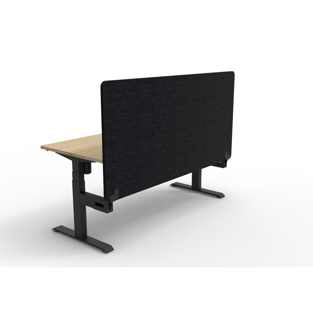 • Electric height adjustable single sided workstation with Natural Oak top and Black Satin frame, Black Eco screen.