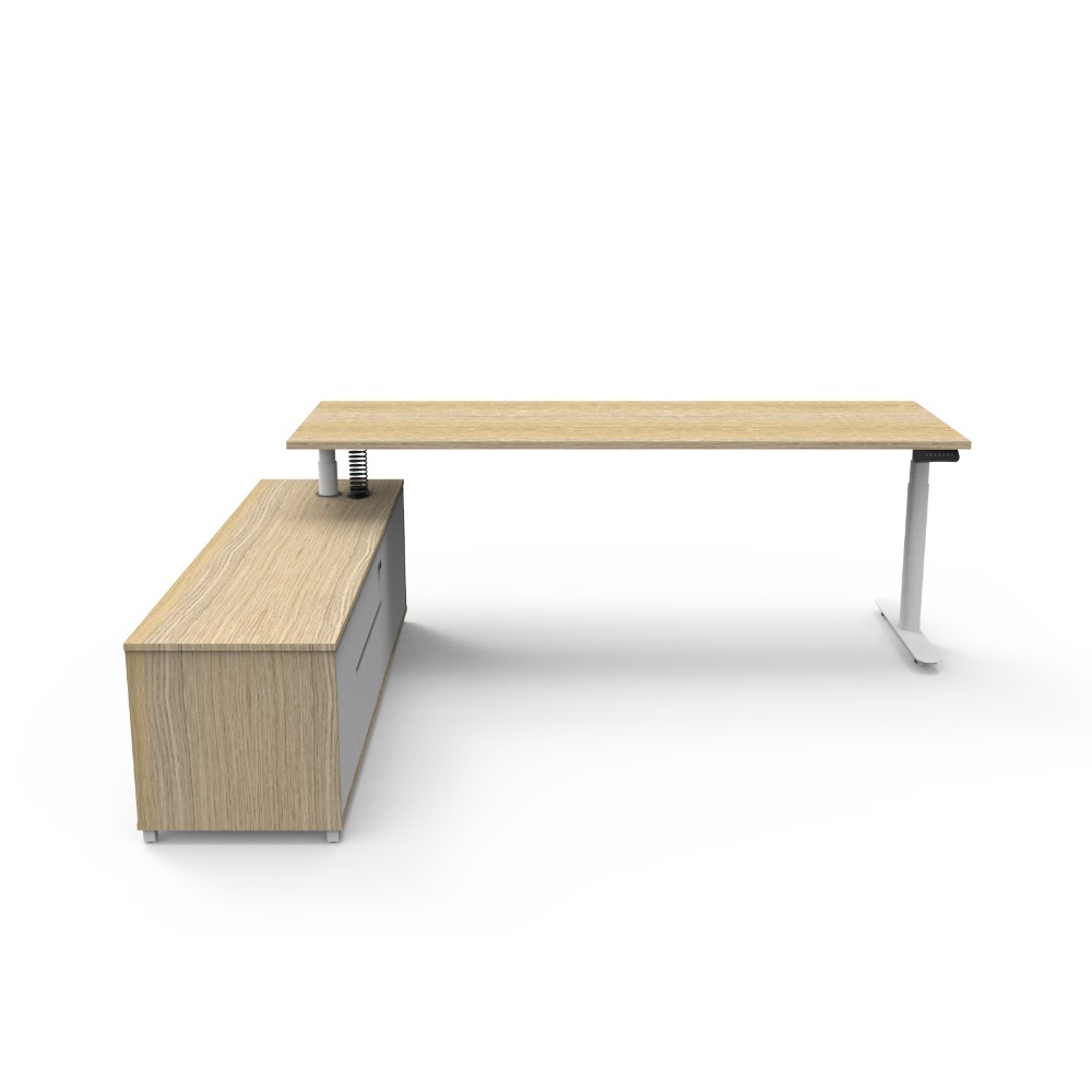 Rapidline Halo+ Executive Desk + LHS Cabinet 2270W x 1936D x 620-1270mmH Oak/White