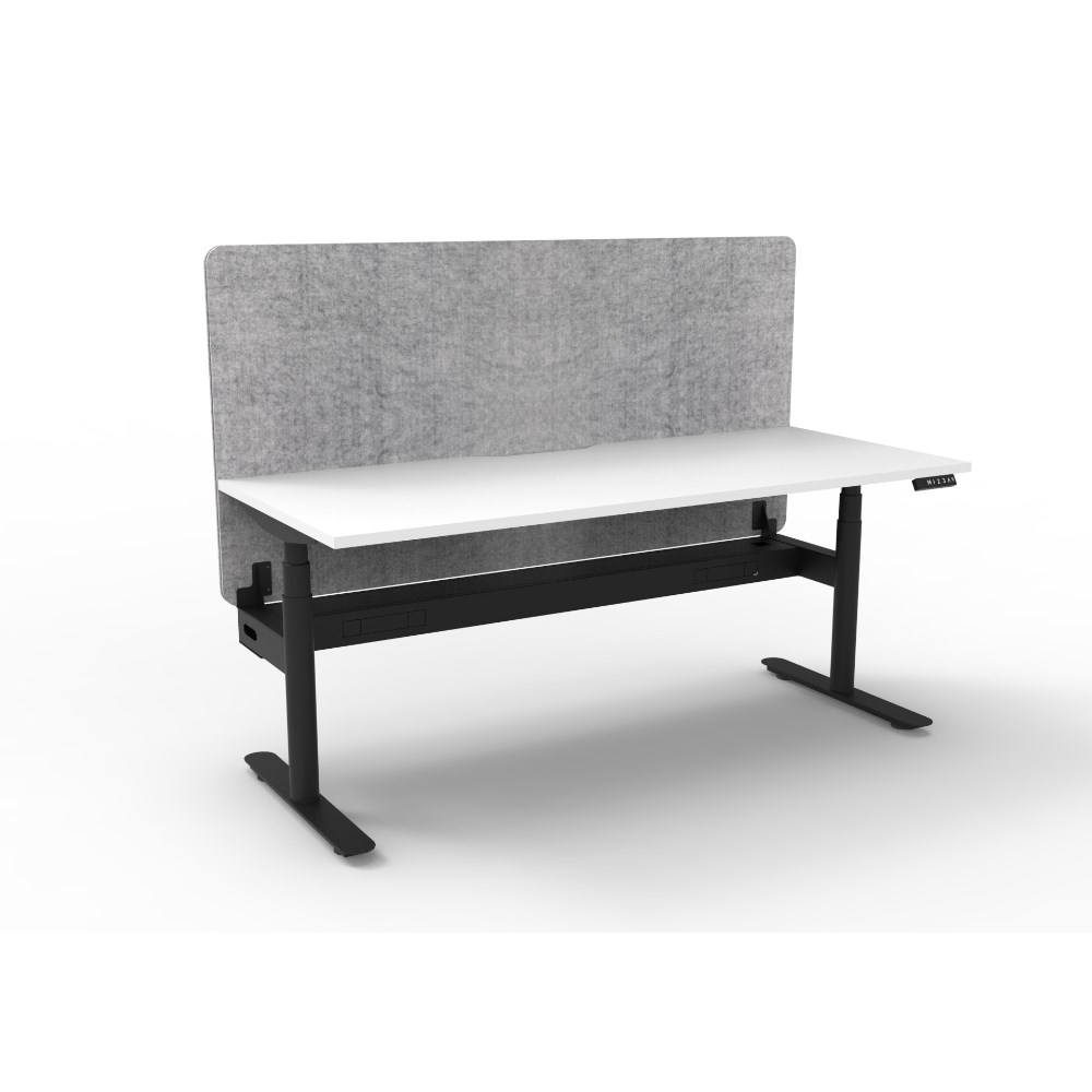Rapidline Halo+ Single Sided Workstation + Grey Eco Screen +Tray 1800Wx620-1270mmH Wht/Bl