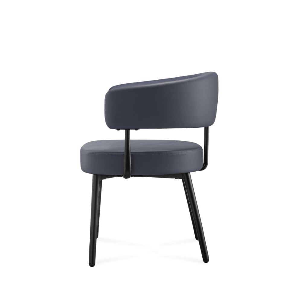 • Robust steel 4 leg frame finished in black powder coat French Navy PU leather seat.