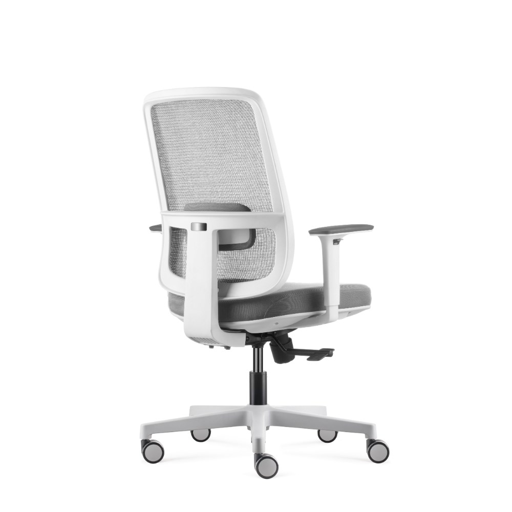 • Lotto medium back operator chair. Medium back. White with grey backed mesh and grey fabric seat. White PP and fiberglass mix frame.