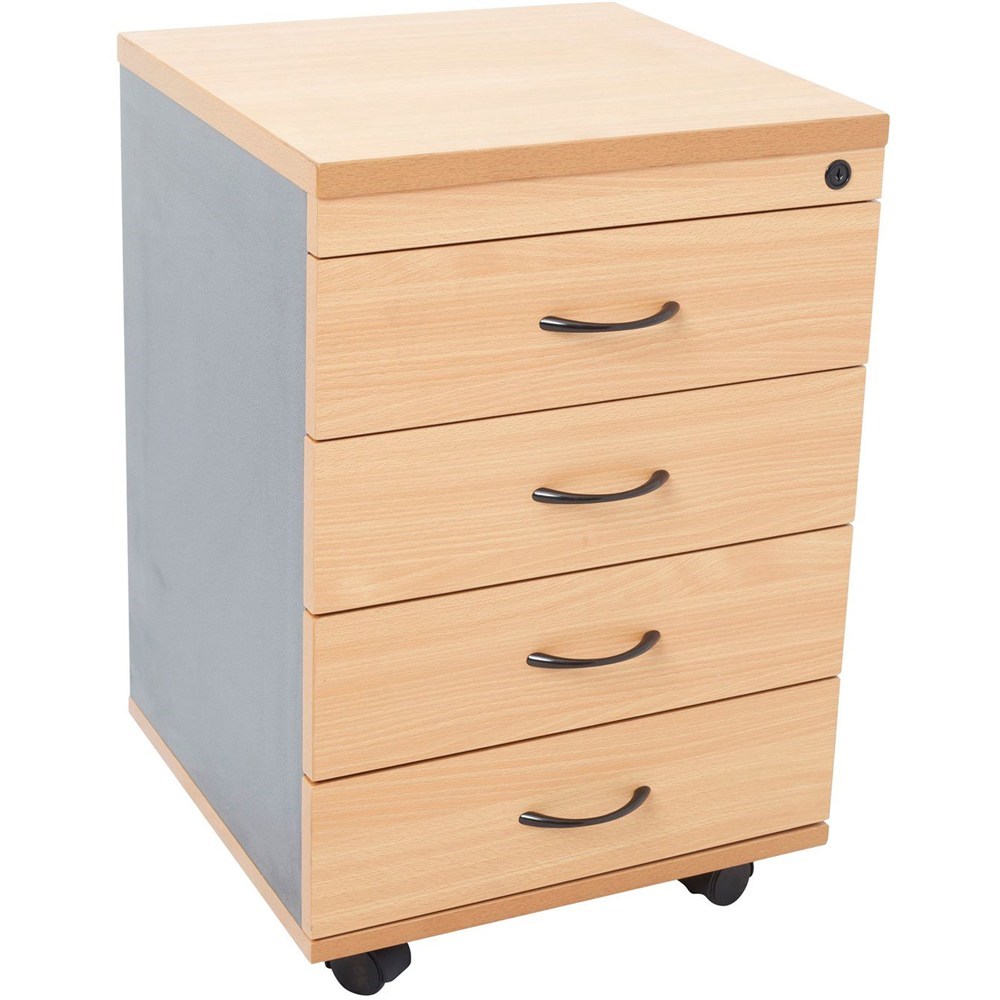 Rapidline Melamine Mobile Pedestal 4 Personal Drawer Beech and Ironstone