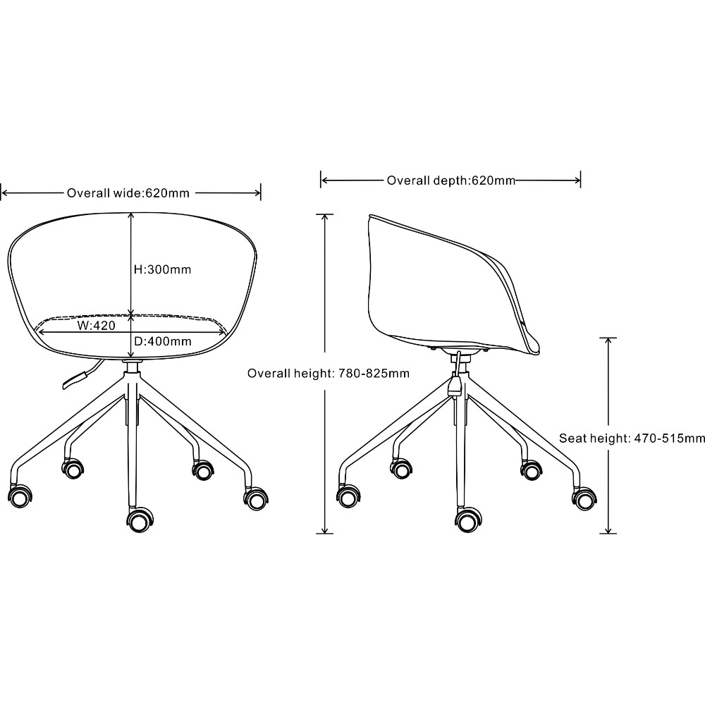 • Dimensions: 620W x 620D x 780-825mmH.