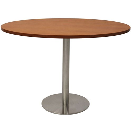 RAPIDLINE CIRCULAR MEETING TABLE 600mm Dia DISC BASE Cherry Stainless Steel
