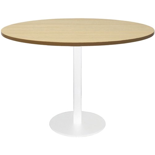 RAPIDLINE CIRCULAR MEETING TABLE 600mm Dia DISC BASE Natural Oak White Satin
