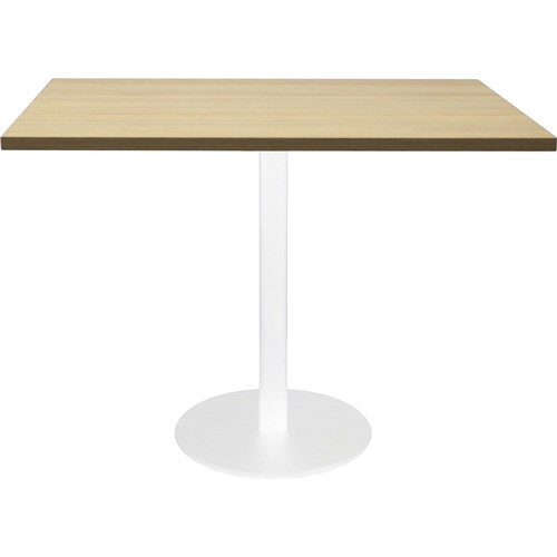 RAPIDLINE SQUARE TOP TABLE 900x900mm CIRCULAR BASE Natural Oak White Satin