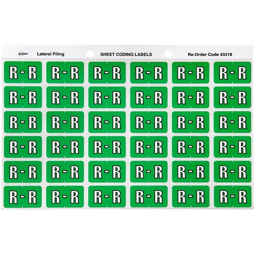 SHEET CODE LABEL ALPHA R LATERAL SIDE TAB 30 LABELS/SHT 180 LABELS PK5