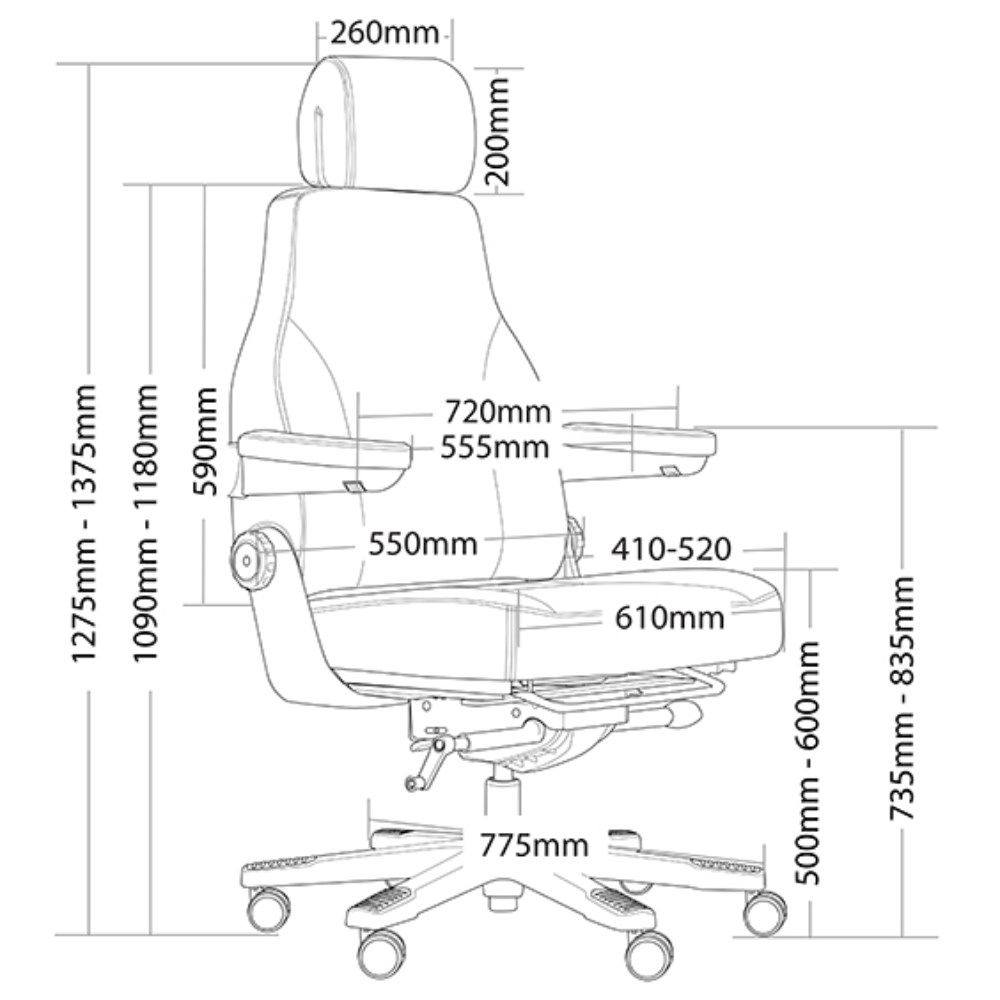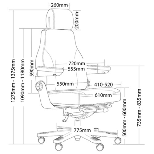 • 750mm black aluminium 6 star base with brake castors. Style rated multi shift use 230kg.