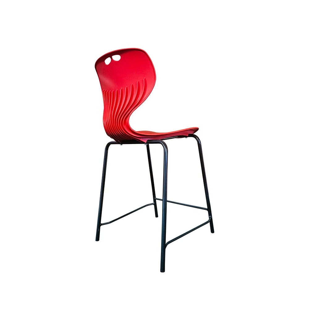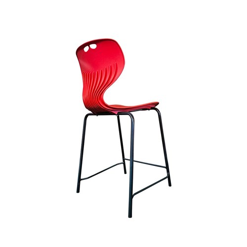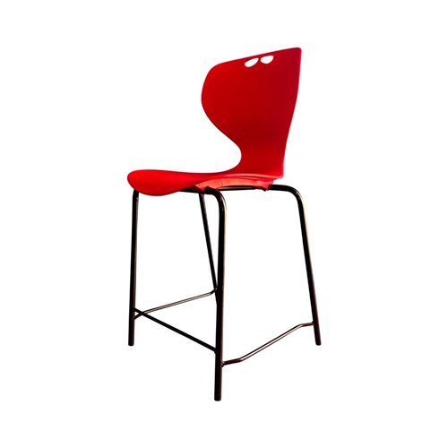 Sylex Roswell 4 Leg Stool 560mmH Plastic Red Seat Steel Black Frame