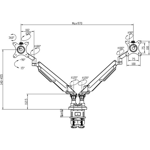 • Independent balanced gaslift height adjustable arm.