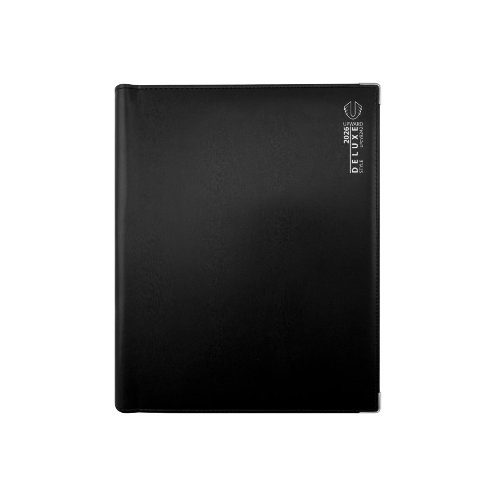 • Double wire binding. Lay flat opening. Ribbon marker. Tabs. Translucent pocket.