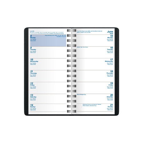 Upward Superior Wire-O Pocket Diary 148 x 74mm 2 Weeks To View Black