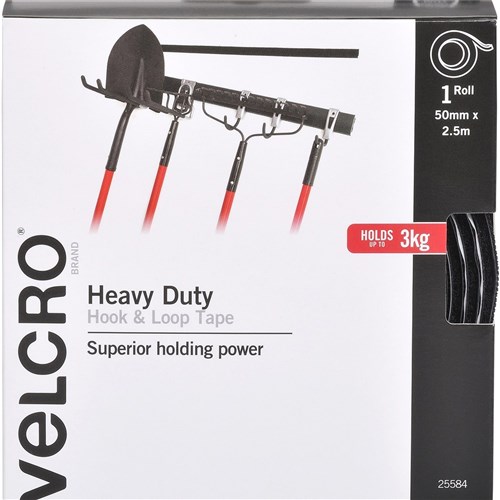 VELCRO 25584 STICK ON Heavy Duty 50mmx2.5m Blk
