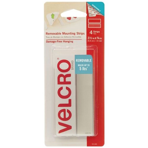 Velcro Brand Removable Strips 44x19mm White Pack of 4