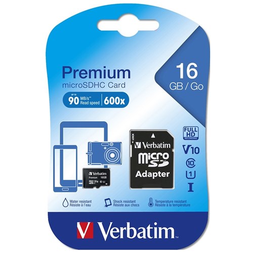 VERBATIM MEMORY CARD MICRO SDHC 16GB