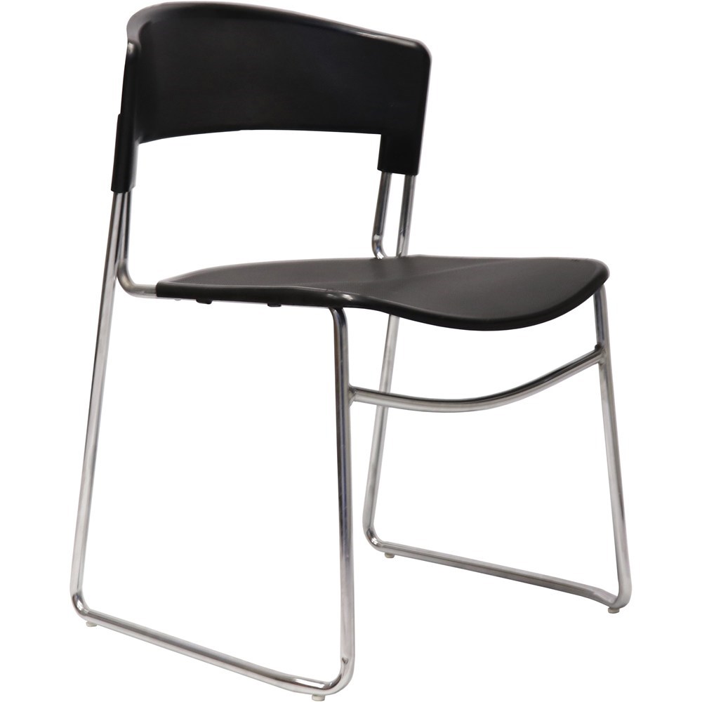 Zola Stackable Meeting Chair Chrome Sled Base Black Polypropylene Seat and Back
